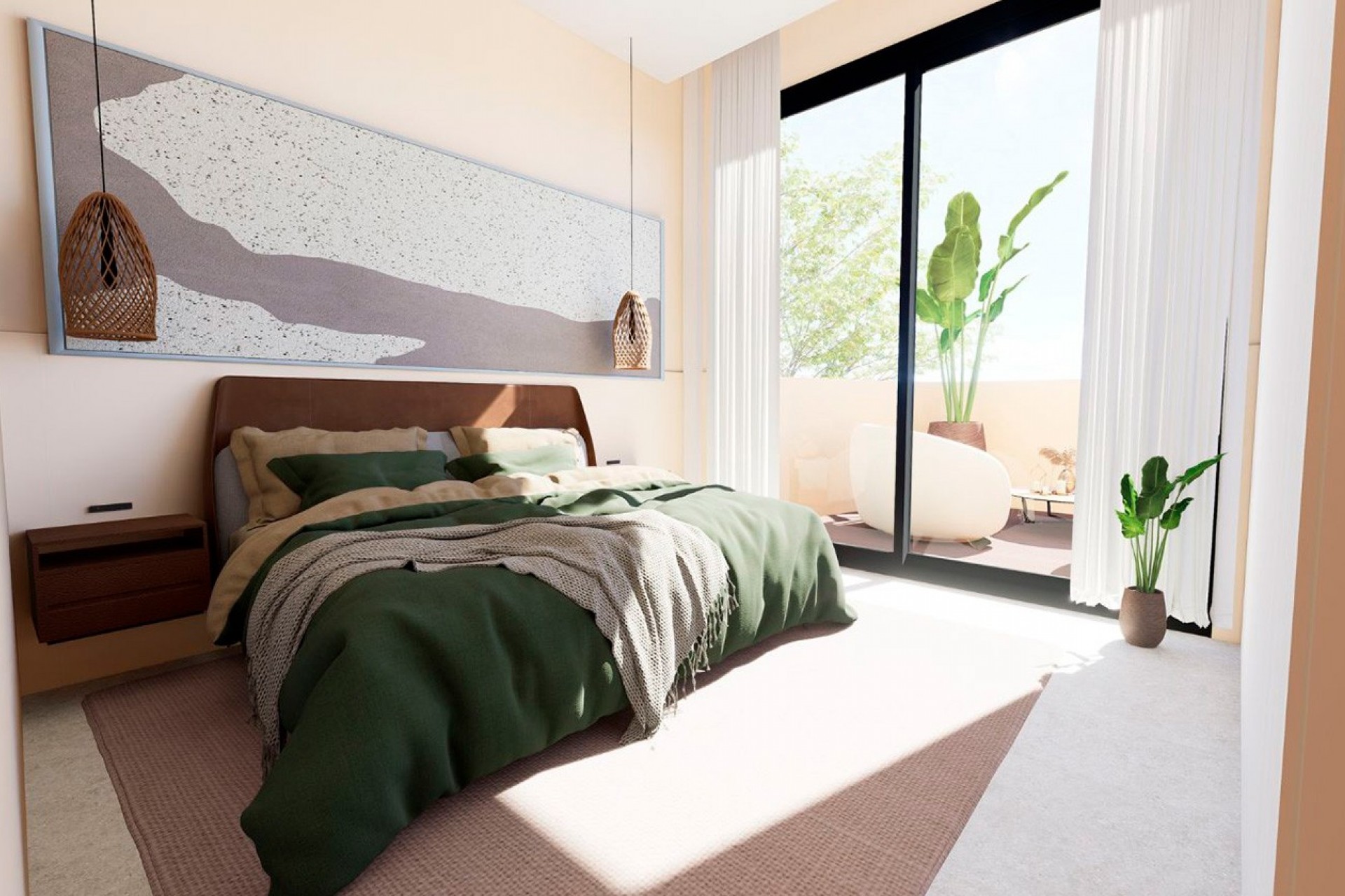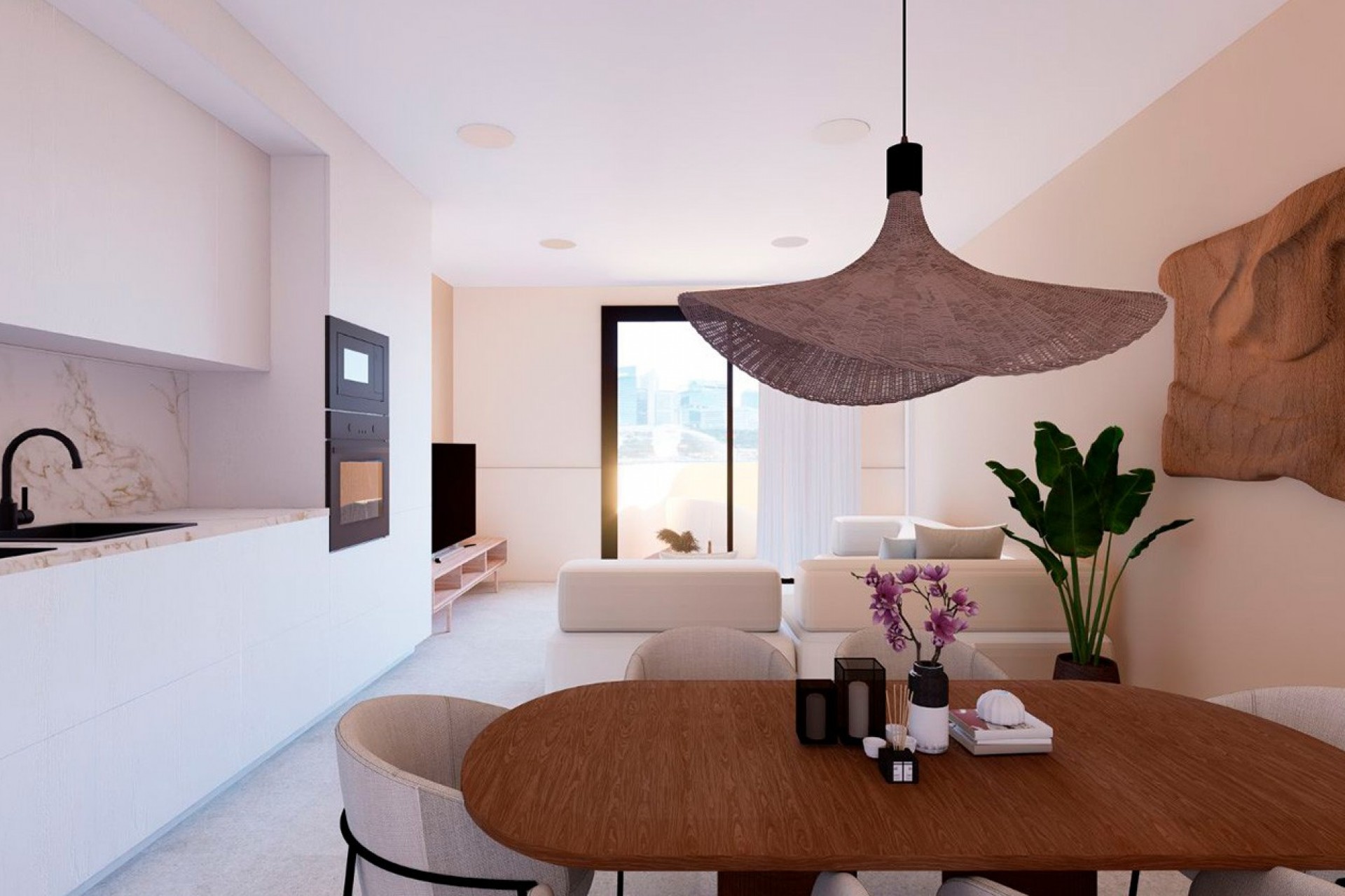 Het gebouw omvat 14 appartementen met twee en drie slaapkamers, ontworpen met een evenwichtige en functionele indeling die optimaal gebruikmaakt van natuurlijk licht, comfort en de verbinding met de buitenruimte. De appartementen beschikken over open keukens die geïntegreerd zijn in ruime woonkamers en royale terrassen, ontworpen om het hele jaar door optimaal te profiteren van natuurlijk licht, het milde klimaat en het uitzicht.