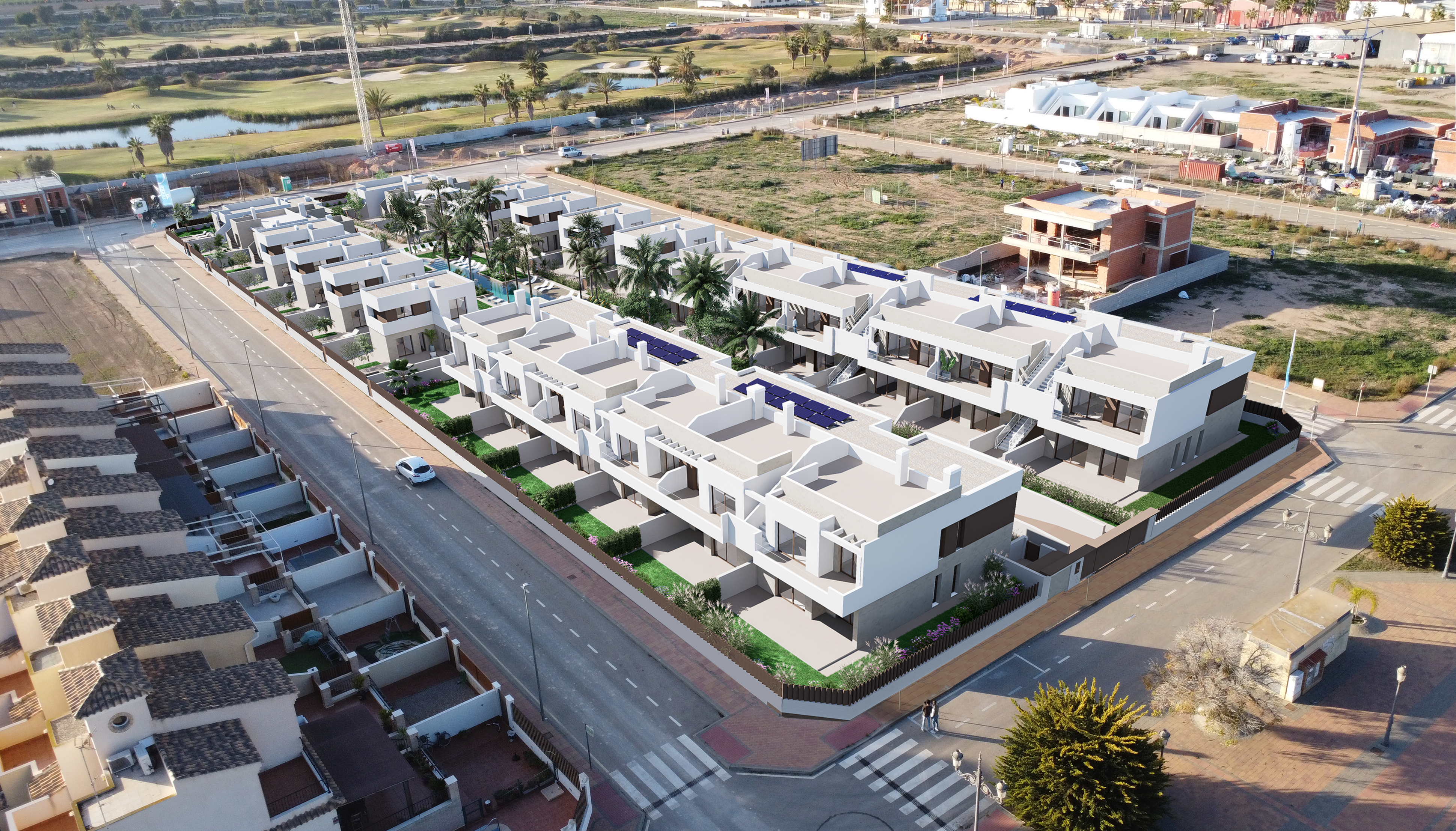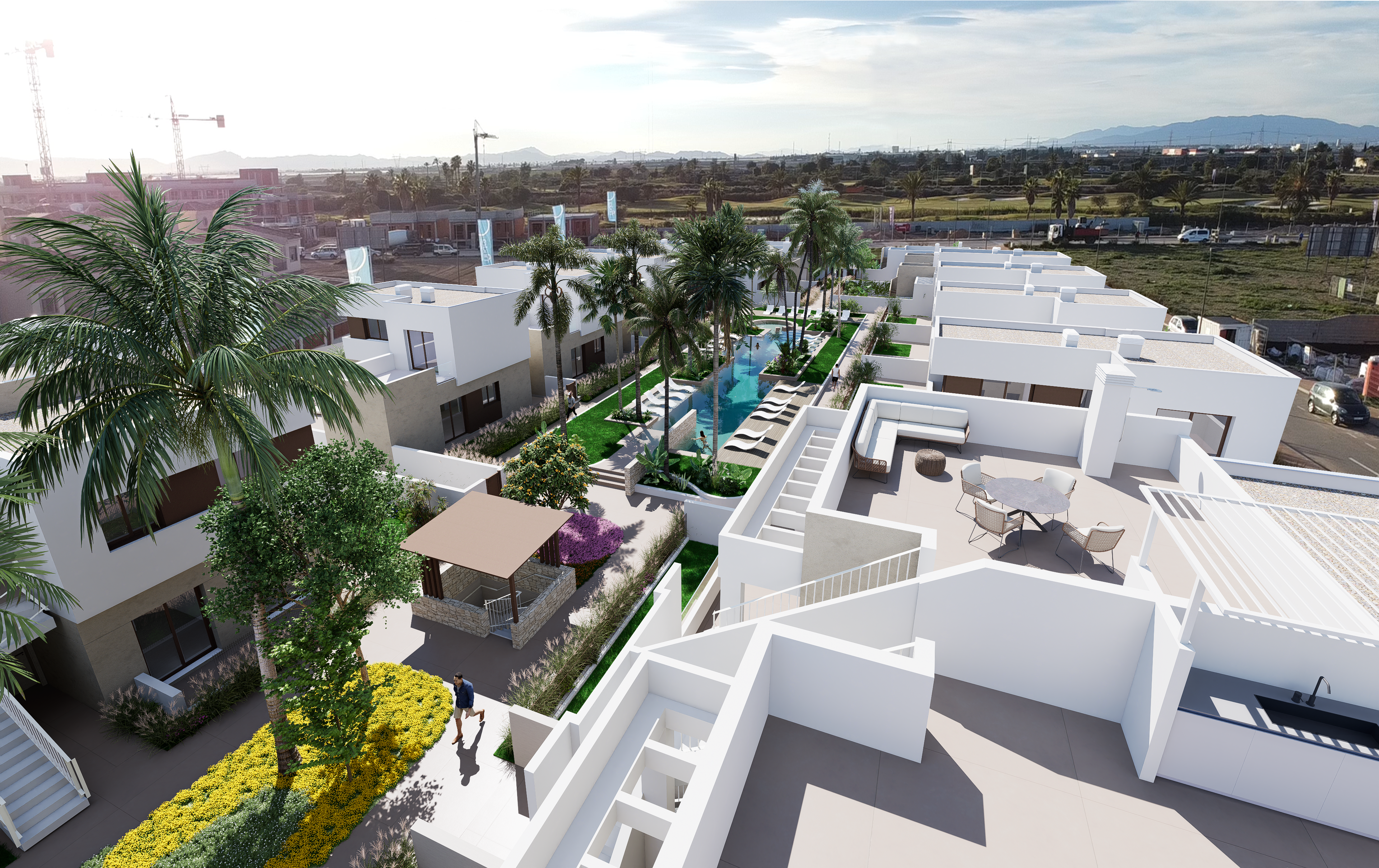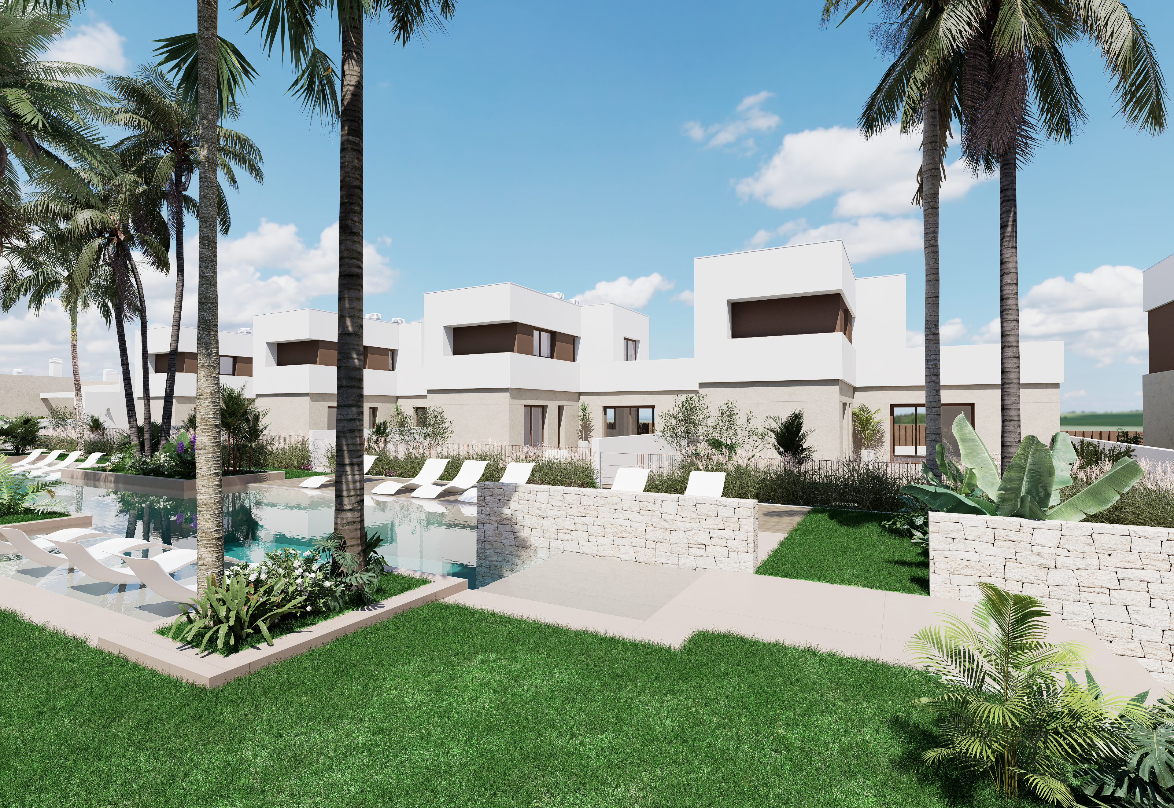 Ontdek deze villa in een zorgvuldig ontworpen wooncomplex met een hechte, moderne en gastvrije sfeer. Een innovatieve omgeving waar hedendaagse architectuur naadloos samensmelt met gemeenschappelijke ruimtes, ontworpen om te delen, te ontspannen en te genieten van de mediterrane levensstijl.