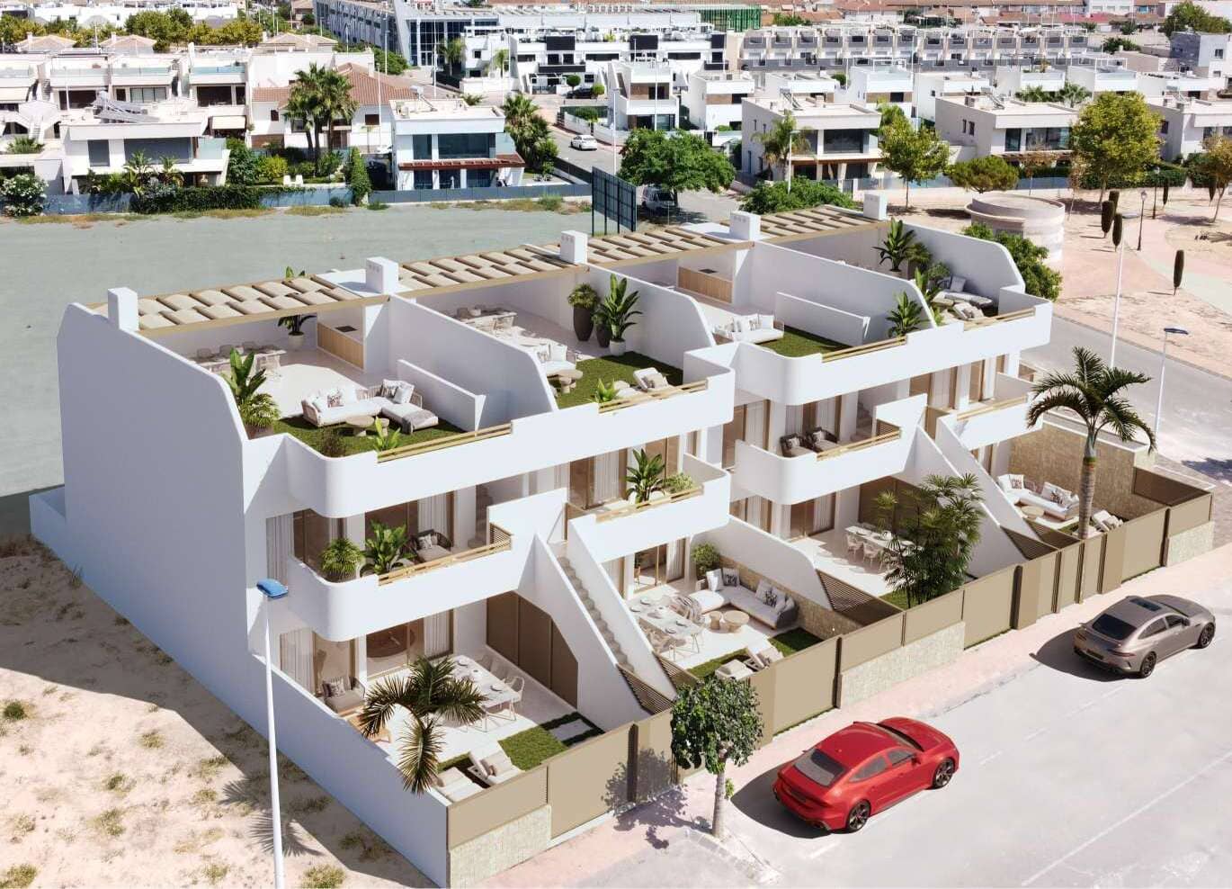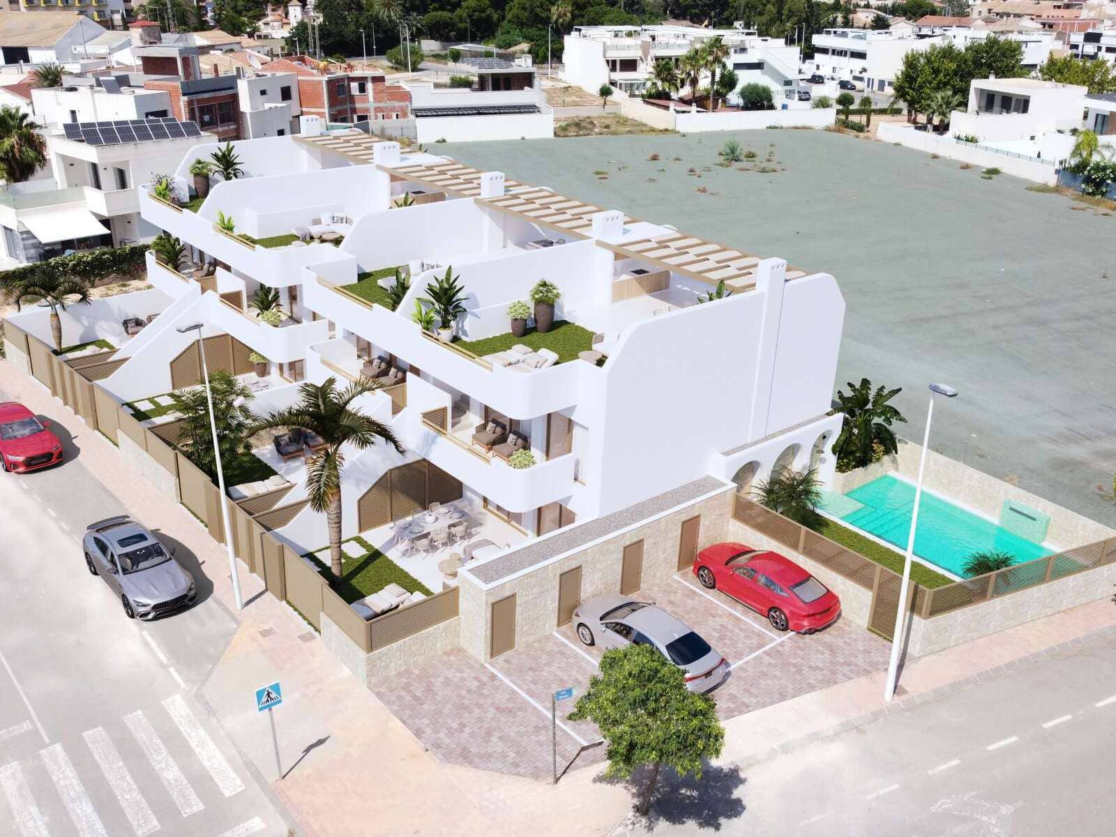 Dit exclusieve wooncomplex in San Pedro del Pinatar bestaat uit een beperkt aantal van slechts acht woningen, ontworpen om ruimte, licht en comfort te bieden in een mediterrane omgeving. Elke woning heeft drie slaapkamers en twee badkamers, verdeeld over een woonoppervlakte van circa 85 m², met een open indeling die optimaal gebruikmaakt van natuurlijk licht.