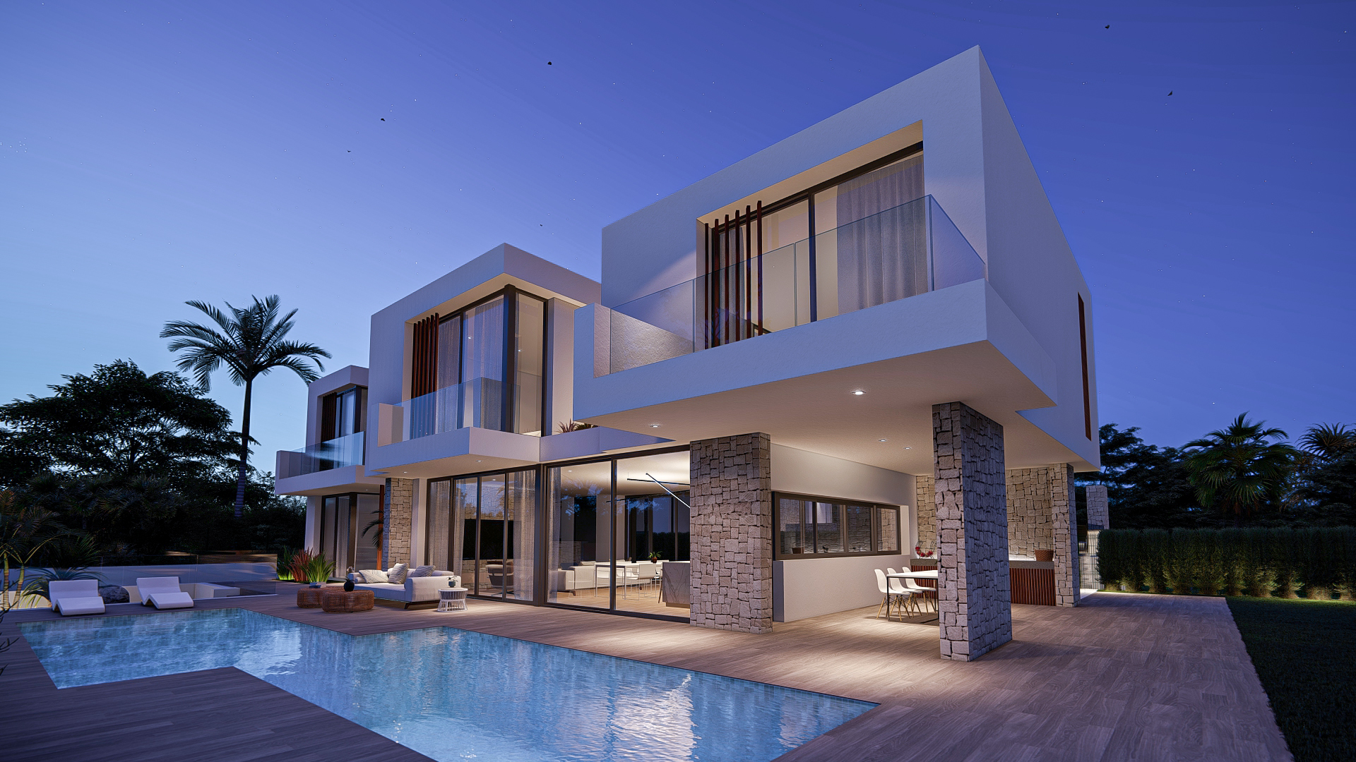De villa’s zijn gepland als een ambitieus project waarin elke lijn, elk plan en elke keuze beantwoordt aan strenge esthetische en functionele criteria die breken met de conventionele vormen van residentieel architectonisch ontwerp.